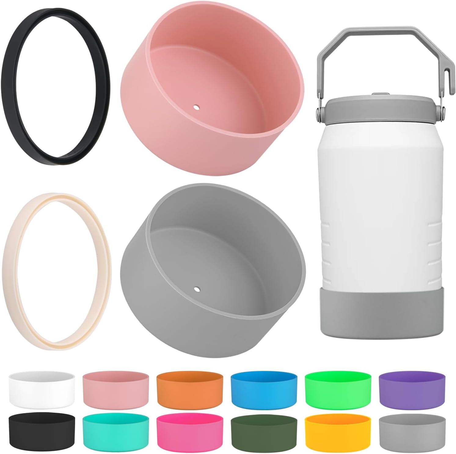 4-Piece Silicone Sleeve with Replacement Gasket for Stanley 64oz IceFlow Flip Top Tumbler, Silicone Sleeve Replacement Gasket for Stanley 64oz Water Bottle