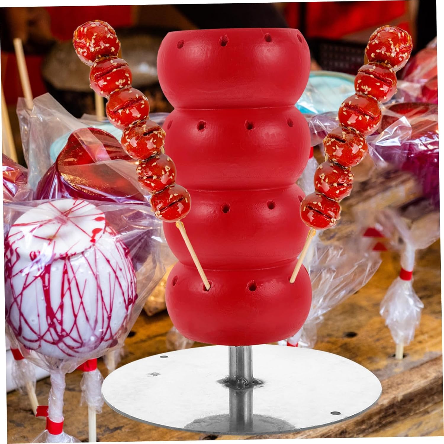 Description Wood Cake Pop Display Stand: Wooden Sugar- Coated Haws Lollipop Holder Candy Holder Lollipop Display Rack Showing Stand Cake Ball Holder Shower Birthday Parties Features- Color: As Shown.- Material: Wood, Iron.- Size: 9. 63X8. 65X8. 65in.- Base Size: 6. 89X5. 91X0. 75in.- Wood Pole Size: 15. 75X1. 34X1. 18in.- Aperture: 0. 4cm/ 0. 15in. Package Including 1 x Candied Haws Stand
