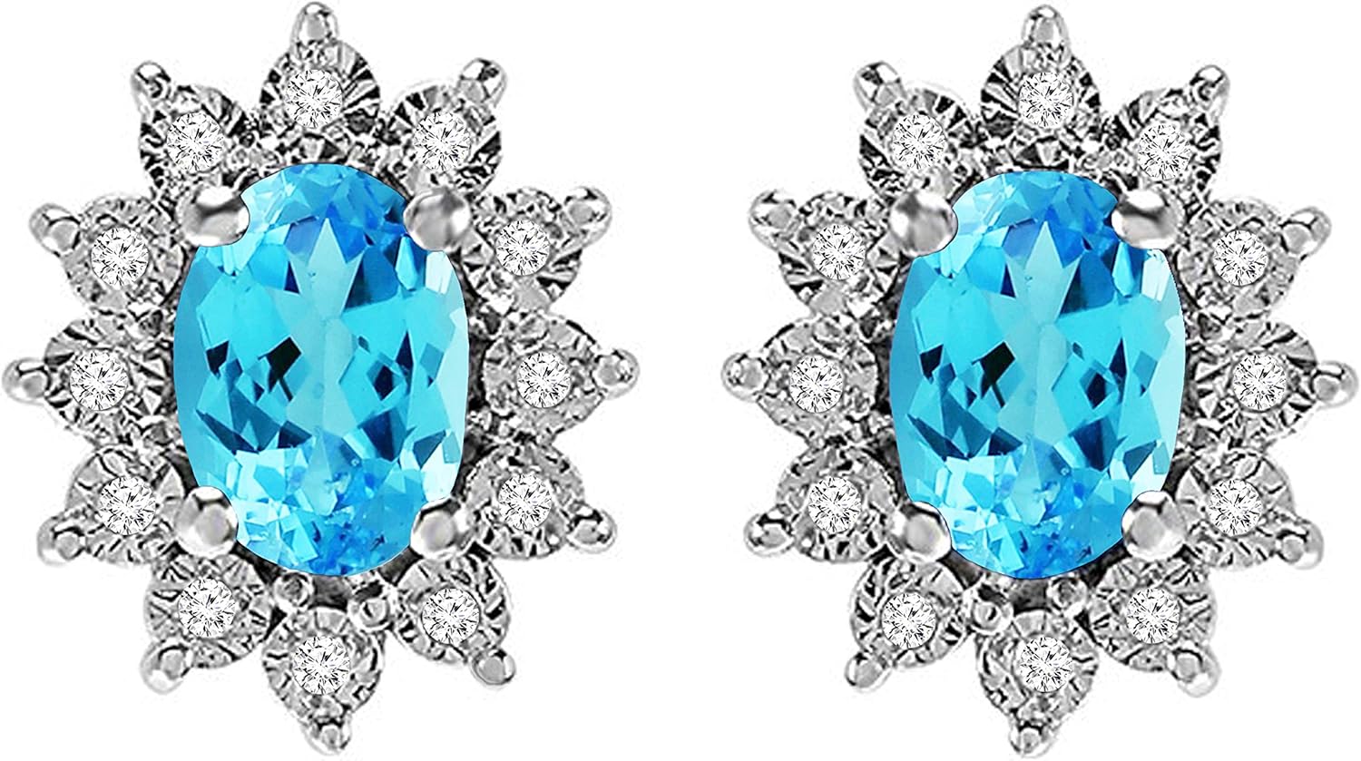 This lovely Stud Earrings features 7x5mm Oval Gemstone & Round White Diamond(s) in Prong Setting.All stones are sparkling.All our products will come with a jewelry box for safekeeping and presentation.SKU # DR13816-968-P