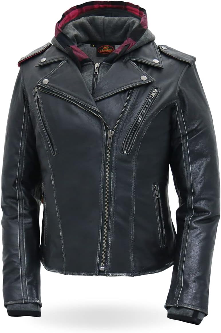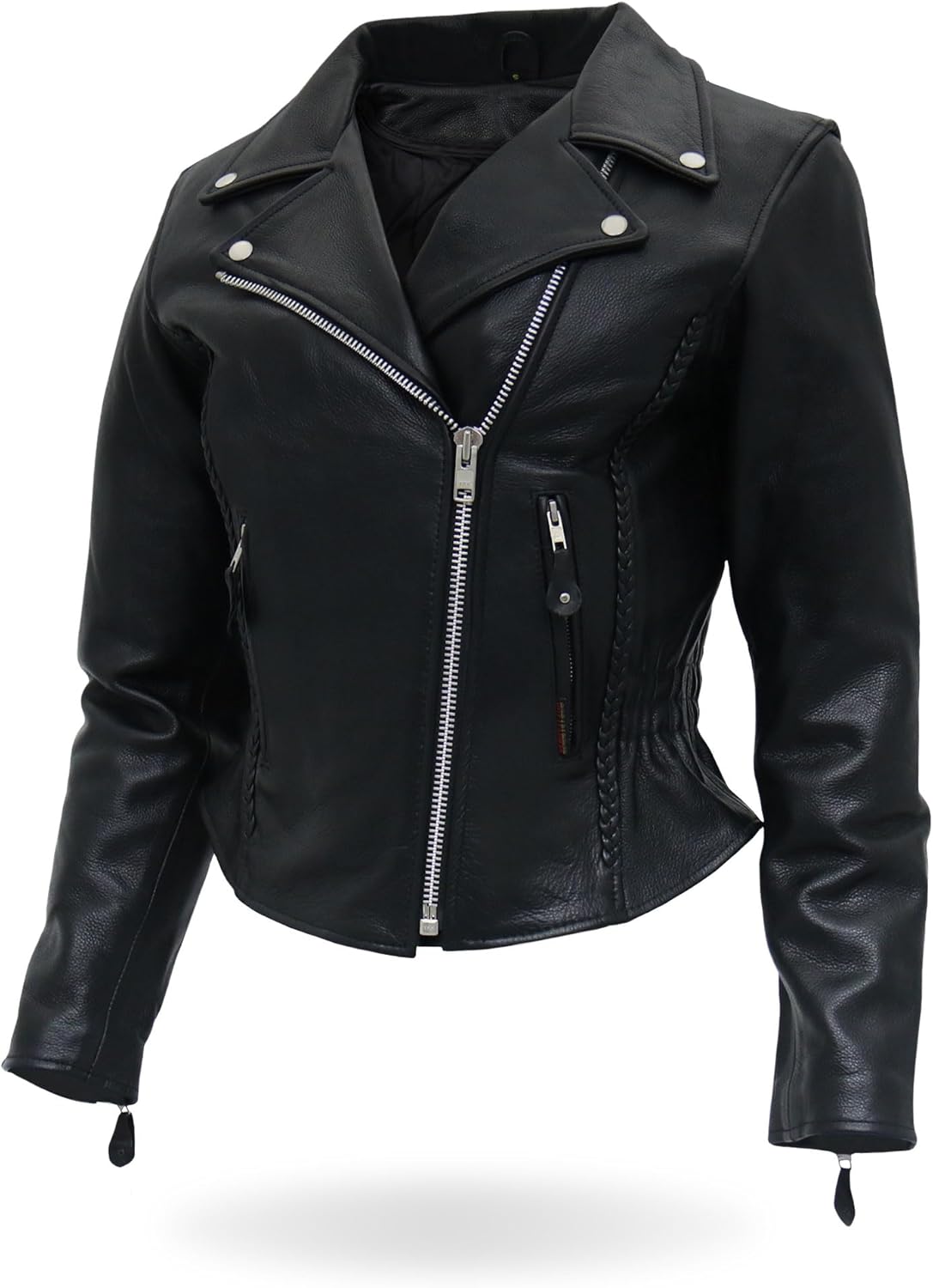 Hot Leathers JKL1032 Ladies Black Leather Jacket with Vented Side Snaps Outside FeaturesMade of Premium Naked Cowhide Leather Snap Down Collar LapelCircle C Fashion Neck Line 2 Outside Zipper PocketsVentilation System: Vents on Upper Shoulder Area and a Middle Back Vent with Zipper Closure and Vent Mesh LiningZippered CuffsWaistline Snap Button Adjustment for an Optimal FitElastic Ribbed Under Arm/Shoulder Panels for Riding ComfortHot Leathers Branded HardwareGenuine Antique Silver YKK Zippers – Known For Longevity Inside FeaturesQuilted Purple Zip Out LiningBuilt-In Mesh LiningConceal and Carry Your Piece with Dual Inside Left and Right Storage Pockets (Can Be Used as Regular Large Storage Pockets If You Don’t Carry)Built-in Hanging LoopRide Fast -