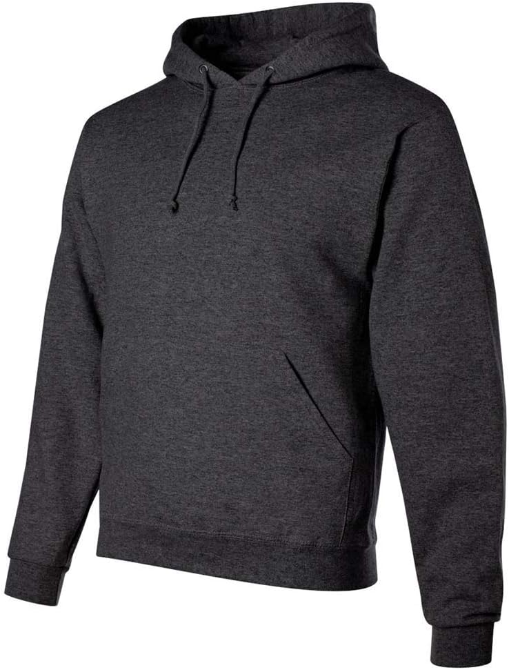 Joe's USA Men's Fundamental Pullover Hooded Sweatshirt. 8-ounce, 50/50 cotton/poly pill-resistant fleece. High stitch density for a smooth printing canvas. Two-ply hood with grommets and dyed-to-match tipped and knotted drawcord. 1x1 rib knit in cuffs and waistband. Front pouch pocket. Double-needle coverseamed neck, armholes and waistband.