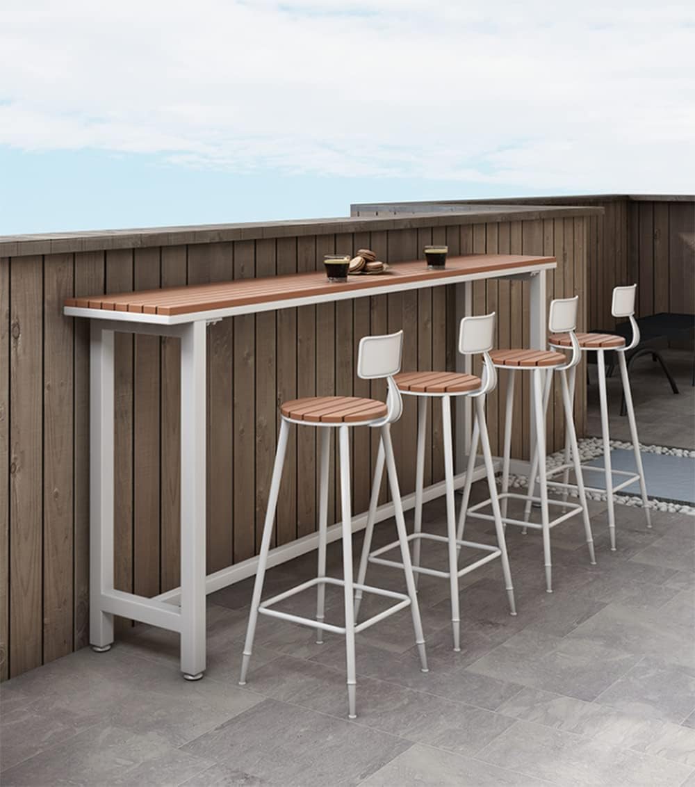 ✦✦Specifications ✦Information Category: Bar Table Usage: Living Room, Dining Room, Hotel,Bederoom, Coffee Shop, Restaurant, Offic Conference, Bar, Weddings.... Style: Modern / Glam / Creative ✦Dimensions Pub Table: 86.6"L x 15.7"W x 41.3"H ✦What's Included Number of Items Included: 1 Piece Table: Yes Chairs: No Assembly Tool: Yes Instruction Manual: Yes ✦Material and Colour Table Top Material: Wood Table Base Material: Metal Color: Black ✦Features Outdoor Use: Yes Height Adjustable: Non-Adjustable Height Leaf Included: No Footrest Included: With Footrest ✦Introductions: 1.Looking for a fashionable dining table? Here Id like to recommend this Bar Table to you. It is ultra stable and built to last. 2. Its perfect size is suitable for most dining rooms, bar. Whats more, the beautiful appearance is great for decorating your home. The smooth surface makes it easier for you to clean. 3. This table was designed to mix contemporary design with classic comfort while looking incredibly modern and stylish. Provide with spacious dining space to invite and enjoy breakfast, lunch, dinner and even afternoon teas with family and friends. 4.Easy to assemble, All you need to do is assemble the screws. A few minutes later, your table is completed. All tools, detailed instruction and floor protections footpad included. 5. Please install goods with the instruction manual. It is recommended that the installation should not be too tight to adjust easily. After the structure is installed, firm the interface for more stability. Welcome to visit our store and buy our special designed and good quality products. If you have any questions about our products and service, please feel free to contact and we will always be here to assist.