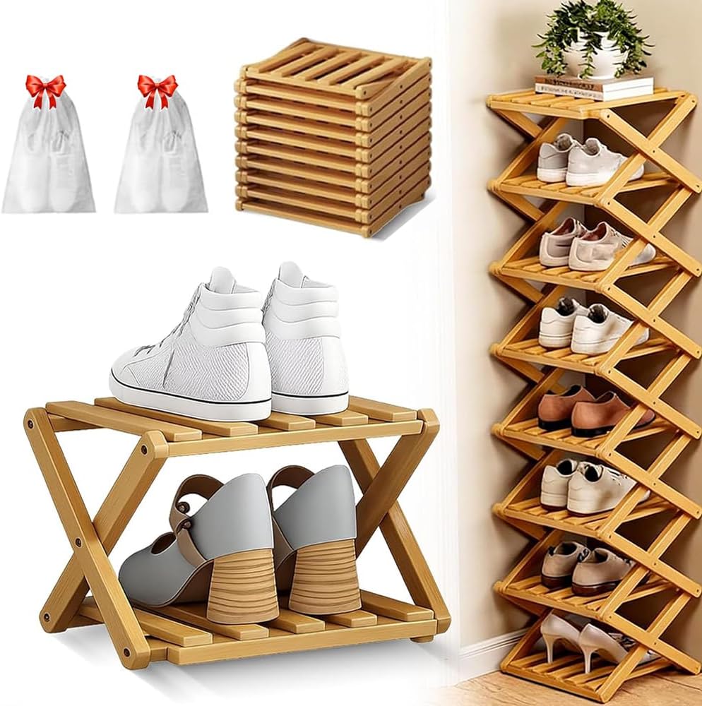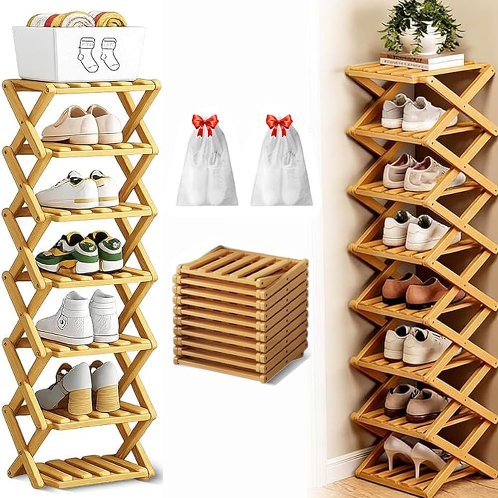 Features: 1.Zero Assembly Required, Space-Saving Vertical Design 2.Multi-Purpose Flat-Folding for Easy Storage 3.Strong & Stable X-Frame Structure, Easy-Care Product Specification: Name: No-Assembly Foldable Bamboo Rack Color: Brown, Original Material: Bamboo Product Includes: 1 PCS * No-Assembly Foldable Bamboo Rack 2 PCS * Shoe Bags Notes: 1. Due to manual measurements, please allow slight measurement deviations. 2. Due to the different display and lighting effects, the actual color of the item may be slightly different from the color displayed on the picture. 3. If you have any questions, please email us first. Thank you for your understanding, I wish you a happy shopping!